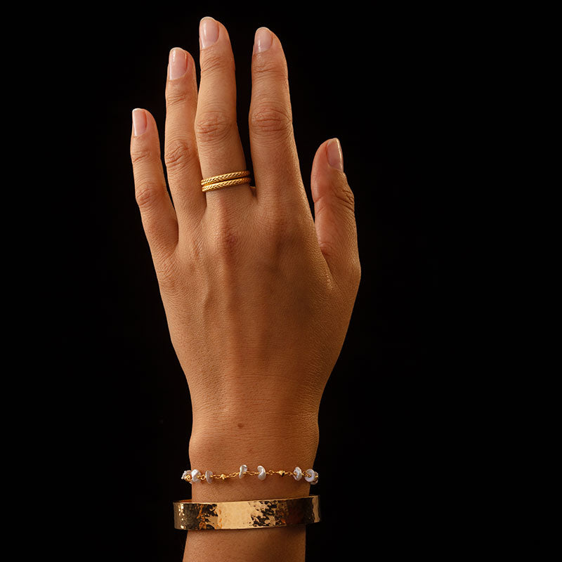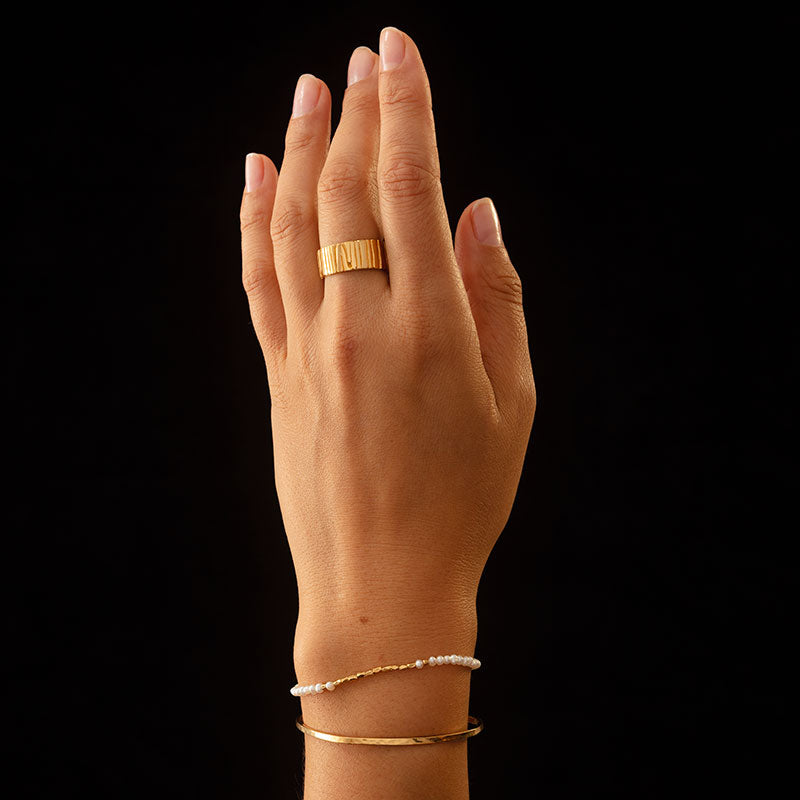 We use the ancient technique of gold vermeil plating, where each piece is finished with a thick layer of high quality 18kt gold plate, and handcrafted from .925 sterling silver. Our gold vermeil process is proudly produced in Australia.