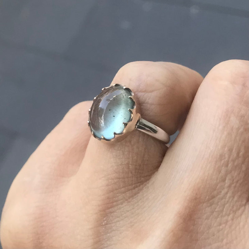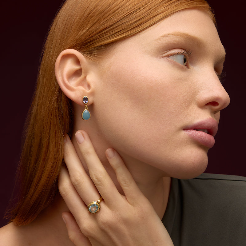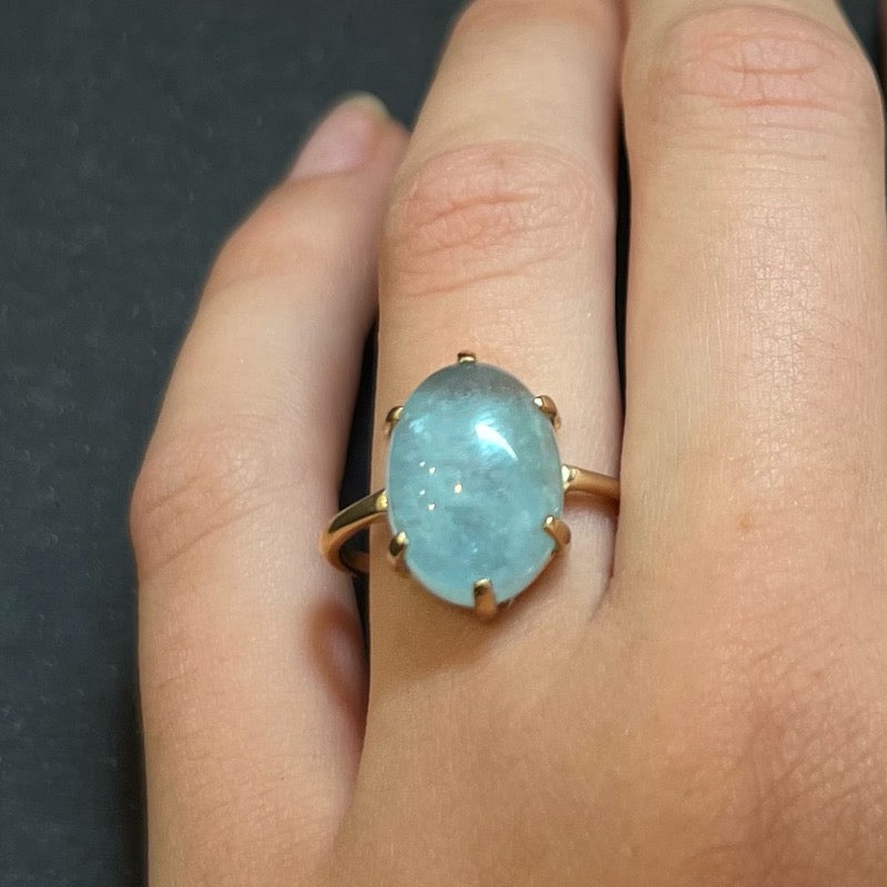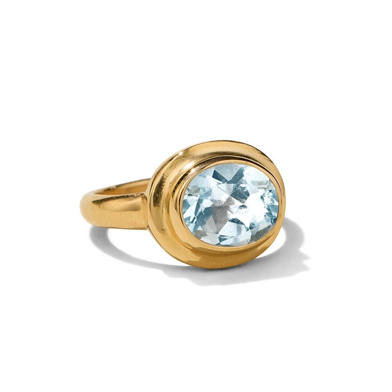 The Breath Stone. Rippling with soft oceanic hues, Aquamarine evokes peace and tranquillity. Its’ long history is filled with legends of protection and longevity. Like a breath of fresh air, the crystalline blue gem cleanses and vitalises inspiring deep connection and reveals the path forward.