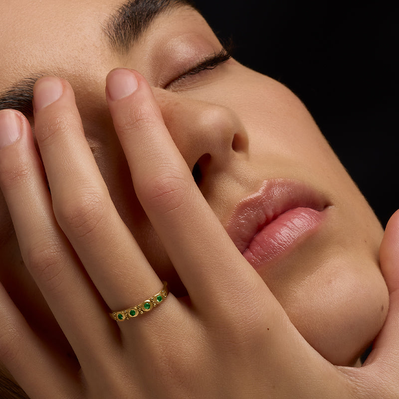 Curate your handscape with a harmony of stacking bands, or hero a single statement ring from Kerry Rocks. Whether you resonate with the rich and buttery hues of solid gold and gold vermeil, the cool allure of .925 sterling silver, or the beauty of their union, each design is an ode to craftsmanship, form, and the natural beauty of precious gemstones. Discover naturally powerful pieces inspired by the raw beauty of earth’s natural forces.