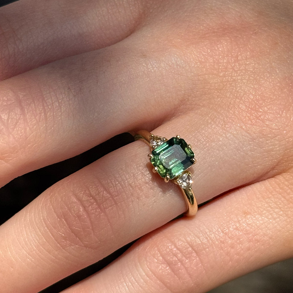 The Baguette Ring: Its elegant, geometric lines make it a top choice, often selected in empowering stones such as Green Onyx.