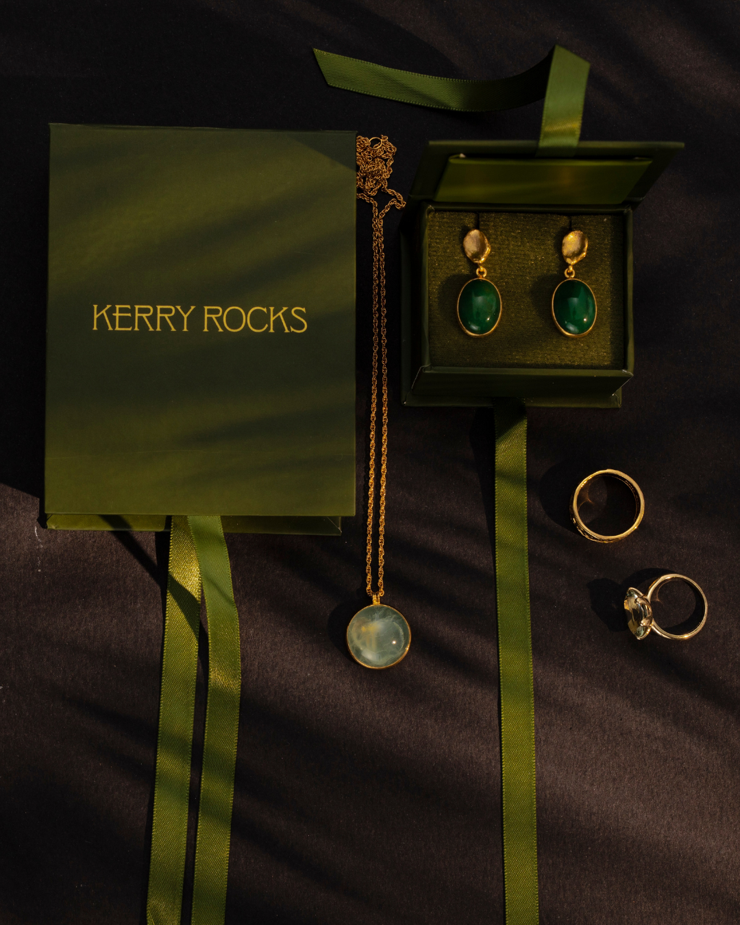 Our consciously handcrafted jewellery are carefully gift wrapped in our signature Kerry Rocks jewellery boxes and finished with a ribbon. Make a lasting impression with a gift bag, available for purchase at checkout.