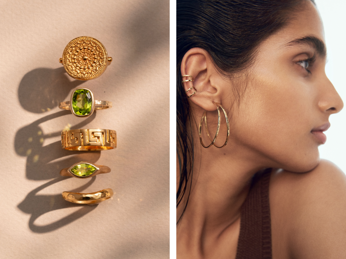 Gold vermeil involves a premium technique of electro gold plating in Australia where each handcrafted .925 sterling silver piece is finished with a thick layer (2.5 microns for earrings, studs and necklaces and 4 microns for rings) of high quality and ethically sourced 18kt gold. This process allows the gold and silver metals to bind together and create durable, nickel free and hypoallergenic pieces suitable for everyday wear.