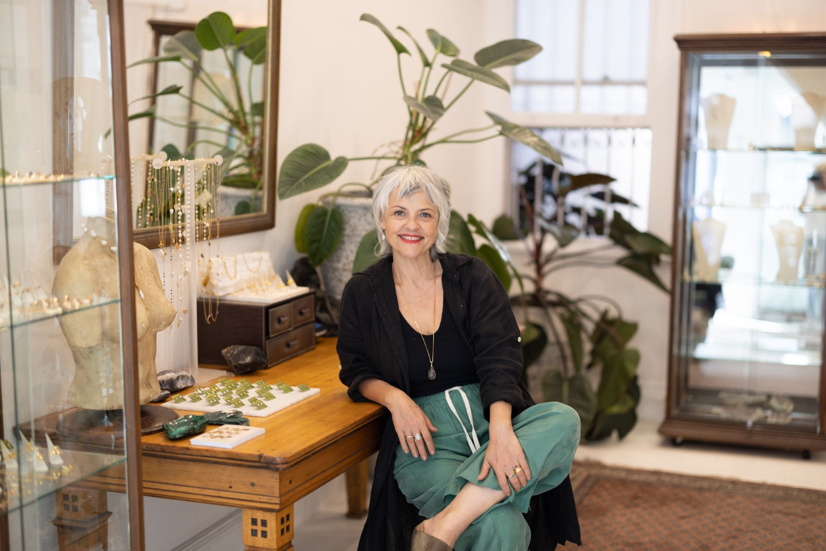 At the helm of this local business Gemologist Kerry Beard, whose dedication to gemstones and jewellery spans a lifetime. From a jeweller’s bench in Jaipur to a bohemian hotel populated by other artisans and selling her jewels in Tel Aviv then the Greek Islands, Kerry roamed the world soaking in all she could. Distinctive in each carefully considered collection are the bold, sculptural shapes of traditional Greek and Indian craftmanship melded with a contemporary finesse.