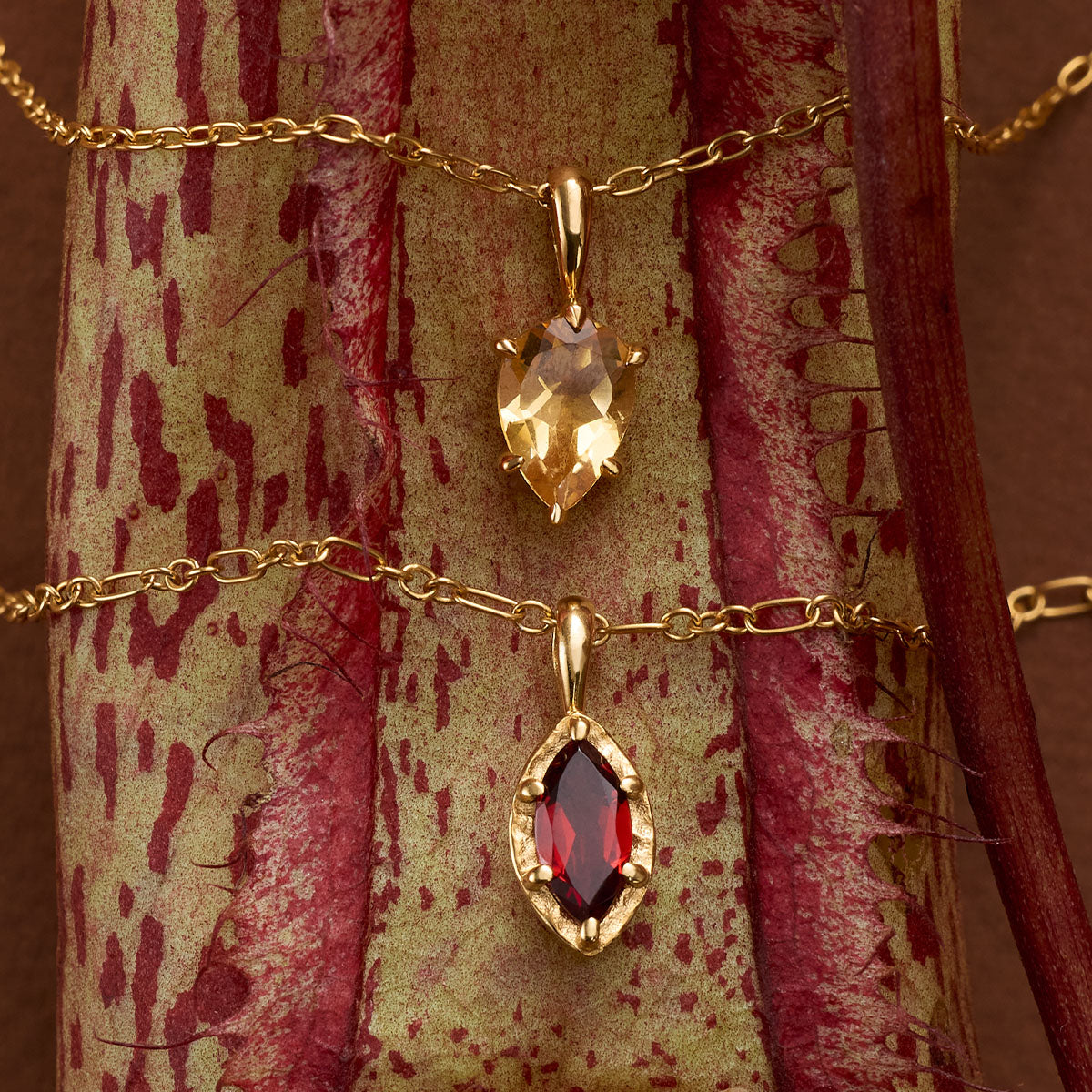A token of connection. Discover KIN, a collection of meaningful gemstone pendants, each holding its own expression of feeling, memory and emotional presence. The Winkie Pendant heroes a fine solitaire cut natural gemstone encased by a handcrafted 4-prong claw design. A refined piece to wear solo as a symbolic amulet or charmed with other beloved keepsakes. Style with KR chains and gemstone strands.