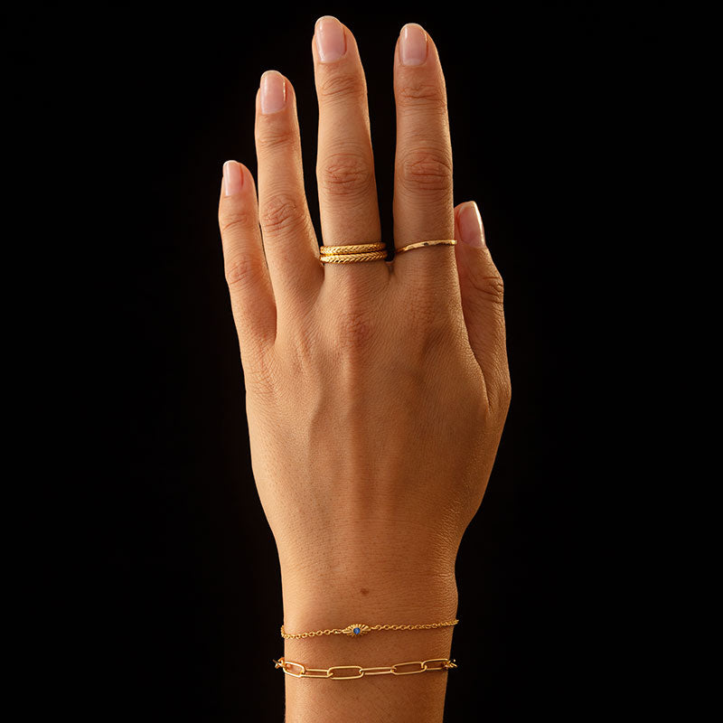A powerful safekeeping talisman derived from ancient Greece, the evil eye is believed to signify protection against negative energy. A fine gemstone pave-set on our signature cable chain in a handcrafted eye-shaped design, The Evil Eye Bracelet is a minimal piece crafted to be worn solo for a refined look or layered with other Chain Bracelets and Cuffs. Available in solid 9kt gold, 18kt gold vermeil and .925 sterling silver.